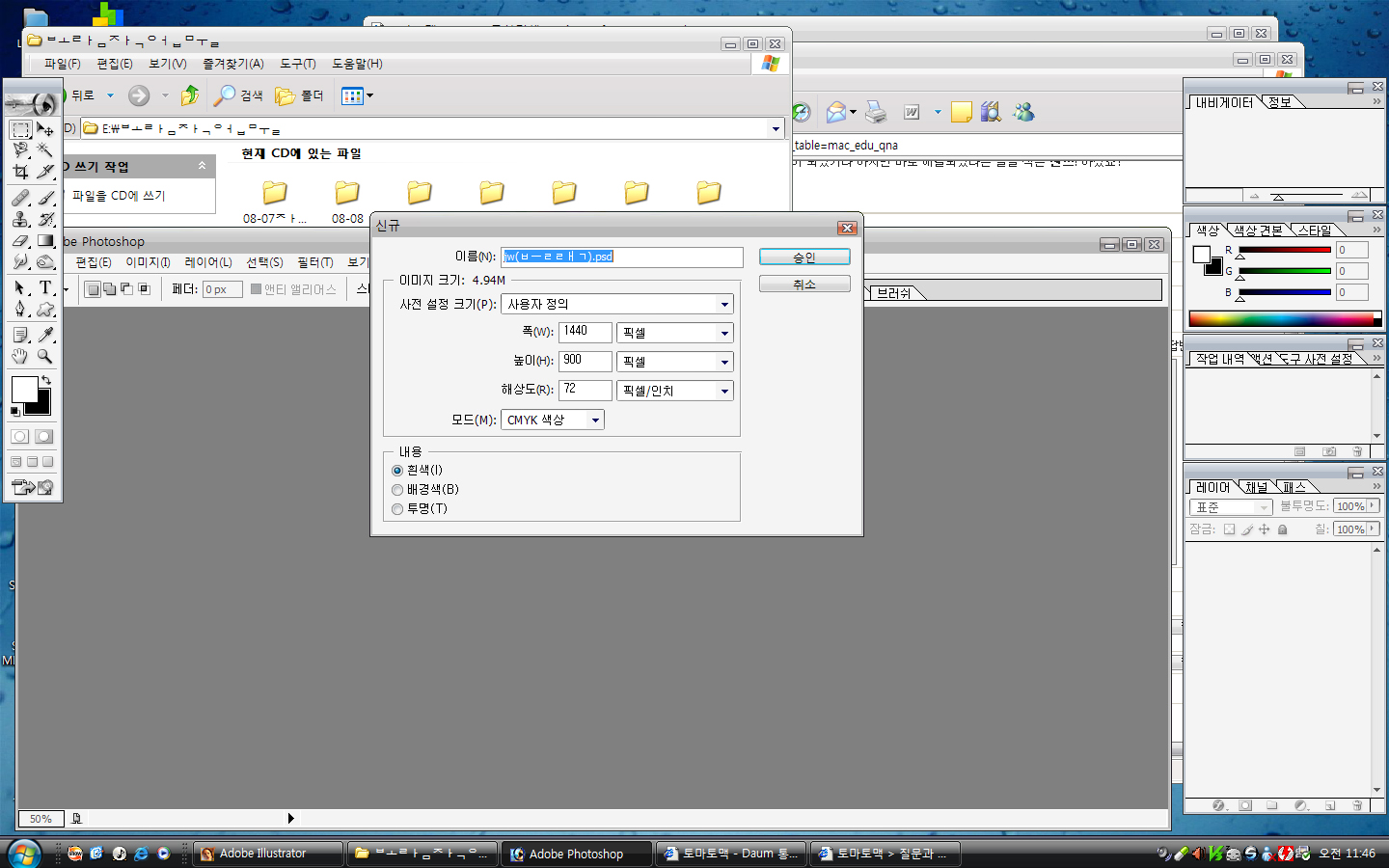 오마이갓............PSD파일만 그런게 아니라 JPG,일러스트 파일 다 안열리고 이상해용 ㅠㅠㅠ