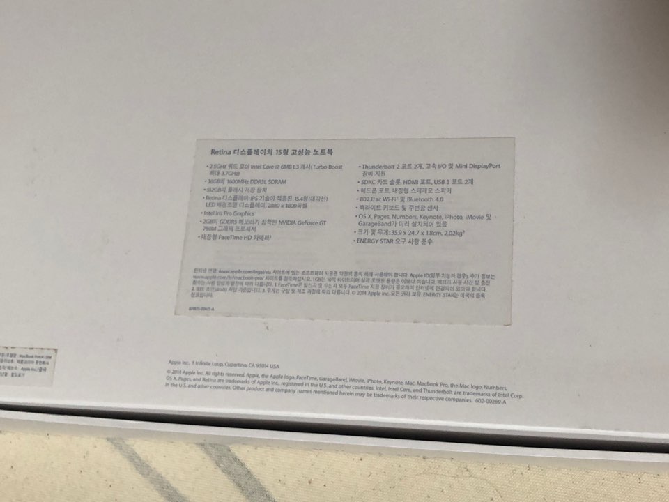 제품 사양 : 맥북 프로 레티나 15인치 2014 mid 고급형