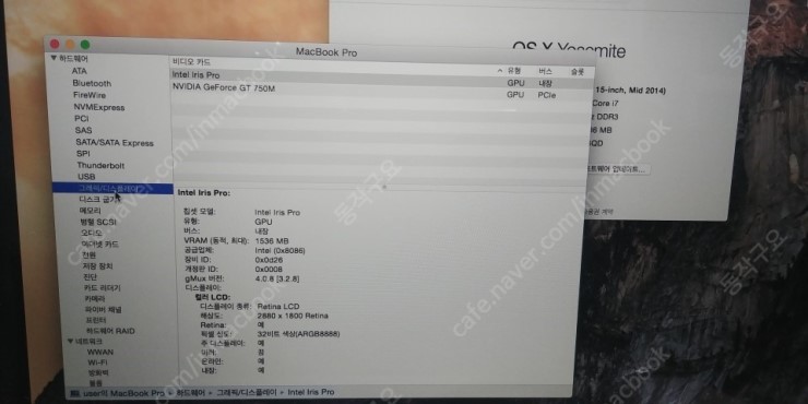 맥북 프로 Retina 15인치 mid 2014 모델 팜